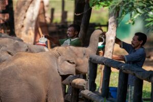 Petit déjeuner à l’hôtel, à Kegalle, nous vous proposons une activité unique. Vous vous rendez à la Millenium Elephant Foundation, un centre de soins dédié aux pachydermes, animaux emblématiques du Sri Lanka. Nourrissez-les, aidez-les au bain et recevez même une douche en vous baignant avec eux (Nous ne recommandons pas les balades effectuées sur leur dos). Partez ensuite en balade à côté de l’animal ; puis visitez le petit musée et la papèterie voisine qui recycle les bouses de ces géants pour en faire du papier de qualité. L’activité dure environ 1h30.