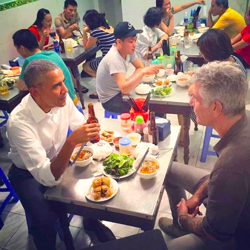 Étant également distingué par le Guide MICHELIN en 2023, Bun Cha Huong Liên est mondialement connu sous le nom de « Bún Chả Obama » après la visite de l’ancien président américain Barack Obama en 2016. Situé au 24 Lê Văn Hưu, ce restaurant familial propose un célèbre « Combo Obama » qui inclut une portion spéciale de bún chả, un nem hải sản (rouleau de fruits de mer frit) et une bière locale. Le bún chả s’y distingue par ses saveurs authentiques et rustiques, mêlant porc fumé, galettes de viande, herbes parfumées, et feuilles de salade fraîches. La sauce d’accompagnement, parfaitement équilibrée, ajoute une douceur subtile qui sublime la viande grillée.