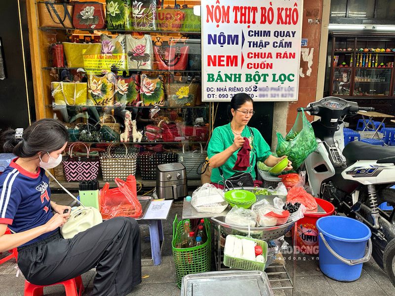 • Banh trang tron: salade de papier de riz mélangé avec mangue verte, cacahuètes, œufs de caille et sauce pimentée.