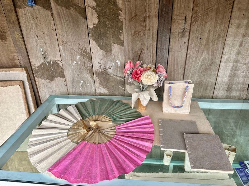 Pour compléter la gamme, les artisans confectionnent également des sacs en papier ban renforcé, des enveloppes, des cartes de vœux peintes à la main et de petits objets décoratifs (boîtes, lampions, marque-pages). Tous ces produits ont en commun d’être entièrement biodégradables et fabriqués à partir de ressources locales – un détail qui compte pour les voyageurs sensibles à l’impact environnemental de leurs achats.