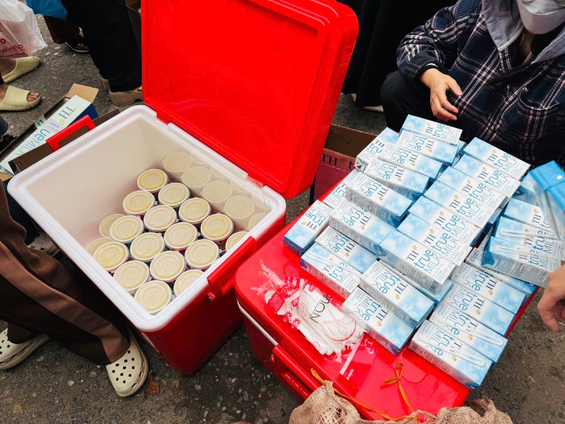 Le 19 novembre 2025, nous avons distribué aux patients trois produits : des bols de cháo (soupe de riz chaude), des briques de lait et 400 pamplemousses provenant directement d’un verger. Ce choix permet à la fois de soutenir les petits producteurs et d’apporter aux patients une source naturelle de vitamine C.