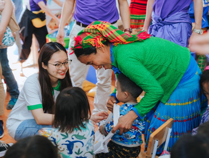 De plus, « le marché 0 VNĐ » à l’école de Me Lau B s’est déroulé animé. Tout le monde a a recu des cadeaux (seaux, pots, paniers…), y compris des articles quotidiens, de la nourriture et des vêtements. Nous avons vu la joie sur les visages des habitants et des enfants. Leurs sourires nous faisaient chaud à notre cœur.