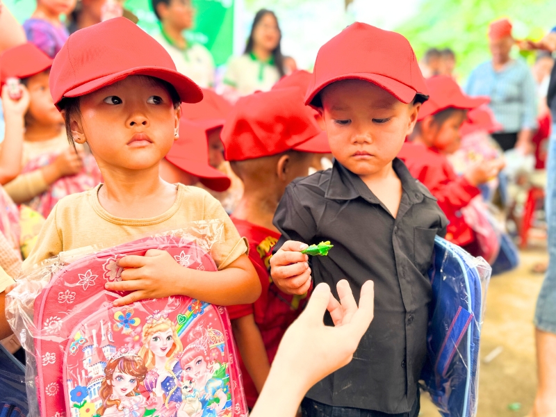 Lors de ce voyage, Horizon Vietnam Travel n’a pas seulement apporté son soutien, mais aussi des cadeaux pratiques pour aider les enfants à se préparer au mieux pour la nouvelle année scolaire. Pour les 20 élèves du secondaire, chaque enfant a reçu un sac à dos, 10 cahiers et une trousse de fournitures scolaires. Les 35 élèves de l’école primaire ont également reçu des cadeaux similaires, comprenant un sac à dos, des cahiers et des fournitures scolaires. De plus, 53 enfants d’âge préscolaire ont reçu des cadeaux comprenant un sac à dos, un chapeau, des sandales, des serviettes et un oreiller. Ces présents ne se limitent pas à offrir du matériel scolaire, mais apportent également joie et motivation pour entamer la nouvelle année scolaire avec enthousiasme.