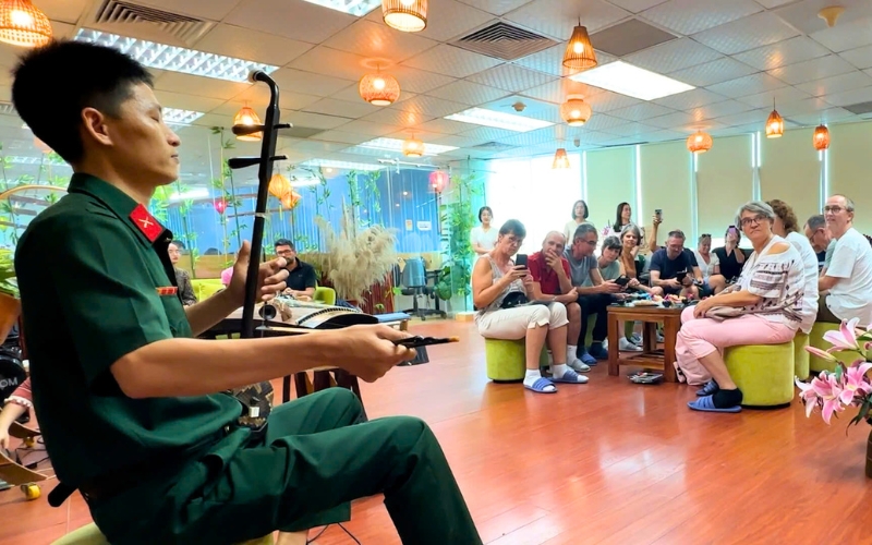 Dès les premières notes, les artistes, parmi les plus talentueux du Vietnam, installent une atmosphère empreinte d’émotion et d’histoire. Chaque instrument apporte sa propre voix : le Dan tranh(cithare à seize cordes) évoque l’élégance et la poésie d’autrefois ; le Dan bau (monocorde) traduit la simplicité et la profondeur de l’âme vietnamienne ; le Dan nhi (vièle à deux cordes) et le Sao (flûte en bambou) rappellent quant à eux la vie des campagnes, la nature et ses paysages familiers.