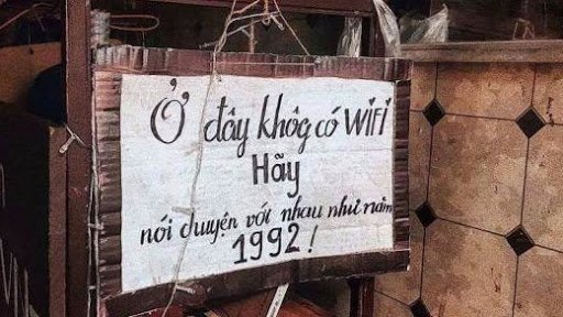 Il est écrit : » nous n’avons pas de wifi. Parlez-vous comme en l’année 1992! »